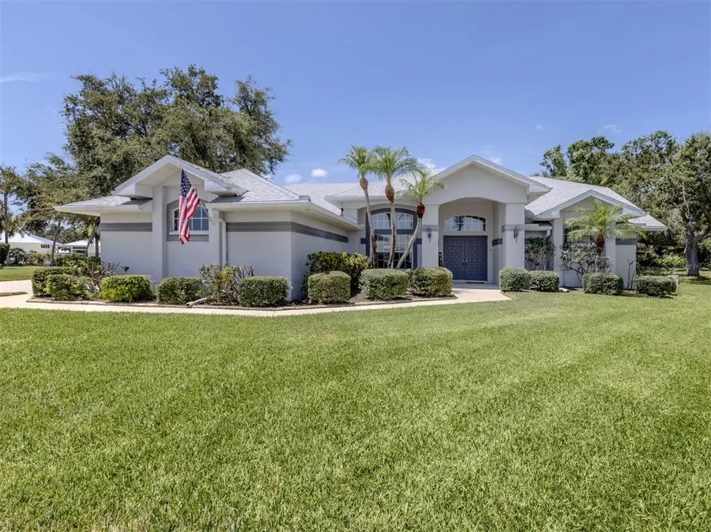 This beautifully maintained three-bedroom, two-bath home offers a spacious great room layout with soaring vaulted ceilings and an open-concept kitchen—ideal for everyday living and entertaining. The updated primary bath features elegant quartz countertops and a walk-in shower, adding a touch of modern luxury. A large laundry room adds convenience, while a new roof provides peace of mind. On a quiet cul-de-sac, the home also boasts a screened lanai with a sparkling swimming pool and a side-entry three-car garage. In a desirable community with low HOA fees, residents enjoy access to a clubhouse, fitness center, tennis courts, swimming pool, spa, basketball court, shuffleboard board and small library.
