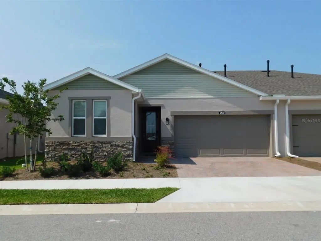 Under contract-accepting backup offers. Short Sale. BACK ON MARKET THROUGH NO FAULT OF THE PROPERTY - THIS IS A HIGHLY UPGRADED SHEA HOMES BUILT ARIA floor plan in 55+ restricted phase (allowance of up to 180 days for minors to occupy according to current rules and regs) - tile throughout - no carpet - light bright and cheerful interior and in an end unit building. Note: this is being sold as a short sale and short sale lender is quick to respond. Don't pass this one up - it's better than new with upgraded features including a full laundry ROOM with side by side washer and dryer. All natural gas service - heating, cooking, water heater and dryer - very energy efficient. This phase has NO CDD fee. This phase is 55+ but minors may reside for up to 180 days/year.................. Easy in and out as you are just inside the main gate - walk to coming soon brand new amenity center building and resort pool (currently under construction). ..................HOA covers lawn and landscape maintenance (cutting, edging, trimming, treating, mulching, fertilizing, irrigation system and water for irrigation), high speed internet, membership in all amenities including indoor and outdoor fitness areas, group fitness classes, 20 miles of dedicated trails for walking and biking, bocce, horseshoe, tennis, pickleball, fishing doc, kayaks, canoes, paddleboat. As a homeowner you also receive discounts in the on-site restaurant, golf course and space for massages, facials, mani-pedi. This area has no CDD assessments. Villas also have reserves for periodic pressure washing as well as when needed, replacing roofs and repainting exterior...............................SHORT SALE BUT LENDER IS VERY RESPONSIVE - JUST NEED A QUALIFIED BUYER!!