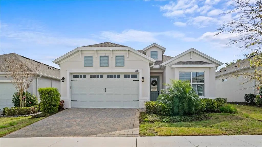 Four Seasons is a 55+ Gated Community right in the Disney Bubble. This is a "BALFOUR" model home on a premium lot with two bedrooms and two full baths with fantastic golf course views. East facing screened lanai with morning sun and shade during the afternoon. Many upgades in this beautiful home including upgraded front door, extended great room and main bedroom, extended covered lanai, screen enclosure, paver extension, gutters, additional rear faucet, upgraded flooring throughout (LVP & upgraded tile), (no carpeting), 12' triple sliders with remote control shades, two dining area windows, blinds throughout, tray ceilings with wood beams in the great room, remote control fans (3), California Closet Storage Systems in both bedrooms and hall closet. The kitchen has upgraded shaker cabinets, quartz countertops, soft close doors & drawers, pot & pan drawers, cabinet for trash cans, S/S appliances confection wall oven and gas cooktop, under counter lighting, single bowl sink, upgraded faucet and pendent lighting over the island. Both bathrooms feature Quartz countertops with upgraded sinks, transom style window and decorative tile in both bathrooms. Upgraded shower with additional handheld shower and frameless glass exclosure (main bath). The garage has an Epoxy floor, laundry tub, garage door windows, external keypad for door opener and mounted storage rack. This home has it **ALL**. You will enjoy the outdoor heated pools, tennis court, pickle ball court and BBQ area. The state-of-the art clubhouse features the management staff, lounge area, kitchen, ballroom, game room, arts and craft room, gym and all the activities you would expect in a 55+ resort style community. You will be in the Disney bubble so traveling to the parks will take no time at all. You will love living at the K. Hovnanian's Four Seasons 55+ Community. THIS HOME OFFERS AN ASSUMABLE MORTGAGE TO QUALIFIED BUYER WITH A VERY LOW *INTEREST RATE*.