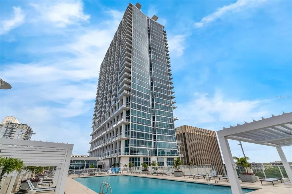 NEWLY REMODELED!! Welcome to your private retreat in the sky—this stunning two-level 1 bedroom, 1.5 bathroom loft at The Vue at Lake Eola offers unobstructed panoramic lake views through soaring 23-foot floor-to-ceiling windows, creating an uplifting and inspiring atmosphere from the moment you enter. Unique to the 4th floor, this loft features ceilings and windows higher than those on other levels, at 23ft high giving the space an even more open, dramatic feel. Among the many thoughtful upgrades are brand-new custom motorized blinds with remote that controls 3 independent areas, top, bottom and sliding glass door, a GE stainless steel microwave and dishwasher, Aquaguard waterproof laminate plank flooring, new bathroom fixtures, and freshly painted walls, ceilings, cabinetry, staircase, and trim throughout. The gourmet kitchen offers granite countertops, a natural gas range, and upgraded cabinetry pulls, while the upstairs owner’s suite showcases elevated lake views, an ensuite bath with full tub, and a custom walk-in closet with full-size washer and dryer. A new eco-friendly water heater—an approximately $5,000 investment—adds peace of mind and value. This ultra-chic loft also offers a private balcony with a rare privacy wall, a premier corner parking spot close to the elevator, and exclusive design touches that set it apart from other units. The Vue’s luxury amenities include 24-hour concierge and biometric access, a rooftop Junior Olympic pool with cabanas and grills, a state-of-the-art fitness center, tennis and basketball courts, yoga studio, media room, cyber café, wine vault, and valet service. Located in the heart of downtown Orlando, you’ll be just steps from Lake Eola Park, the Farmers Market, Dr. Phillips Performing Arts Center, and some of the city’s best dining and nightlife. This is more than a home—it’s a lifestyle. Turn key move in ready!